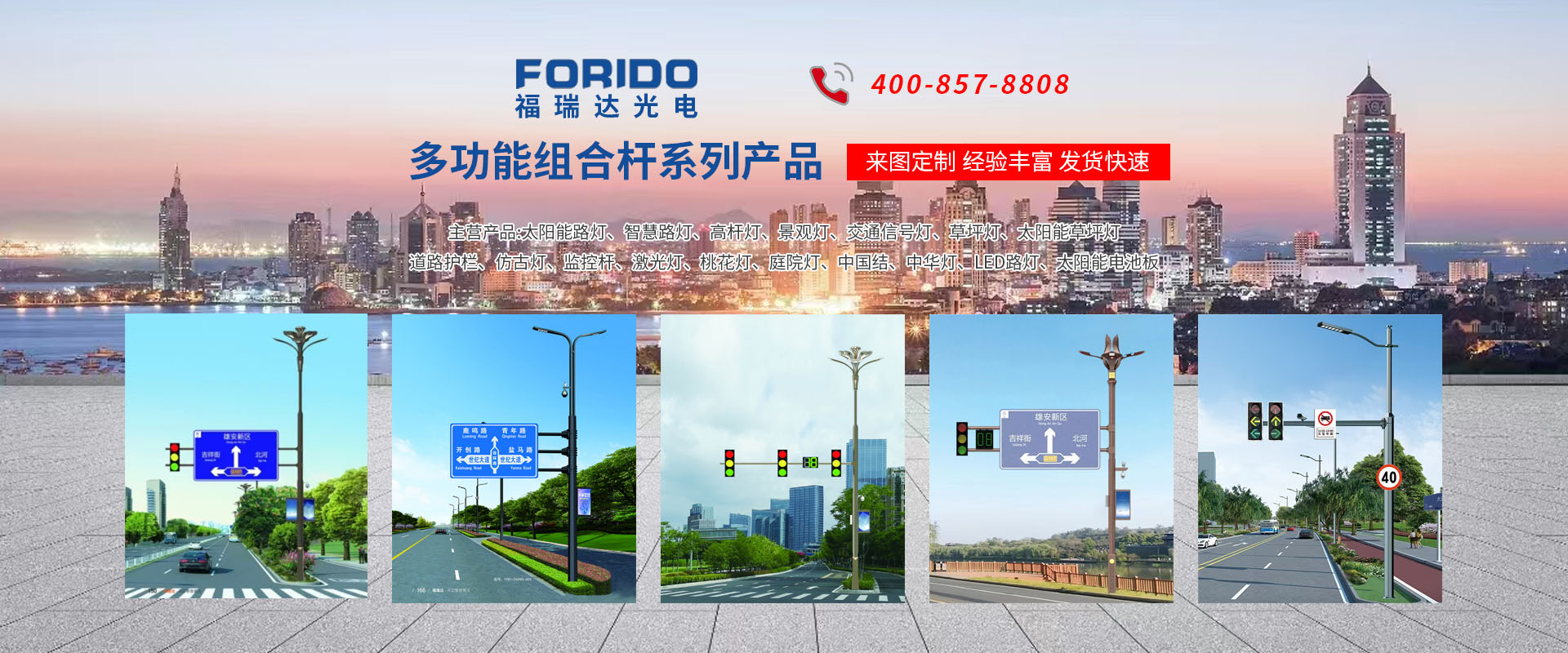 揚(yáng)州福瑞達(dá)光電科技有限公司位于淮左名都?xì)v史文化名城、中國路燈制造基地?fù)P州市北郊菱塘工業(yè)園,公司占地面積76000平方米,注冊資金10518萬元,擁有高級技術(shù)嫻熟的員工280多人,擁有大型折彎機(jī)、激光切割、數(shù)控注塑機(jī)、壓鑄機(jī)、自動(dòng)埋弧焊、氣焊、彩色粉末靜電噴塑等大型自動(dòng)化設(shè)備,我公司是一家集設(shè)計(jì)、研發(fā)、生產(chǎn)、銷售、施工安裝服務(wù)為一體的戶外交通照明產(chǎn)品制造商,主要生產(chǎn)智慧路燈、太陽能路燈、LED路燈、高桿燈、景觀燈、交通信號燈、交通標(biāo)志牌、通信鐵塔、路跨鋼結(jié)構(gòu)、公交站臺、太陽能光伏組件、景點(diǎn)亮化、樓宇亮化工程的設(shè)計(jì)施工等。公司秉承開拓創(chuàng)新、銳意進(jìn)取、精誠服務(wù)的企業(yè)精神,堅(jiān)持以“誠信為本、技術(shù)為先、服務(wù)是金”的合作理念,我們憑借先進(jìn)的制造工藝、優(yōu)質(zhì)的產(chǎn)品質(zhì)量、合理的市場價(jià)格和完善的售后服務(wù)贏得了廣闊的市場和客戶的信賴。 我公司已通過ISO9001質(zhì)量體系認(rèn)證、ISO14001環(huán)境管理體認(rèn)證,CQC產(chǎn)品認(rèn)證,中國節(jié)能產(chǎn)品認(rèn)證,通過“CCC”強(qiáng)制性產(chǎn)品認(rèn)證,具有市政總承包,照明,交安,設(shè)計(jì)等資質(zhì)···